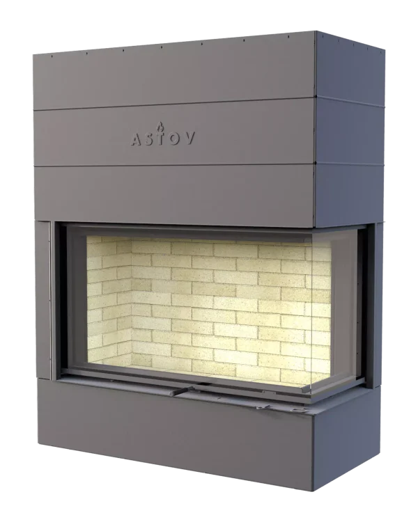 Угловая топка с двумя стеклами отлично смотрится с двух сторон, за счет возможности создать двойной обзор спереди и сбоку.